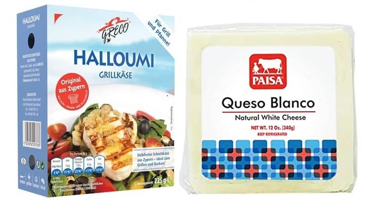 É possível substituir o queijo coalho pelo queijo cipriota Halloumi ou queijo venezuelano branco/Paisa.
