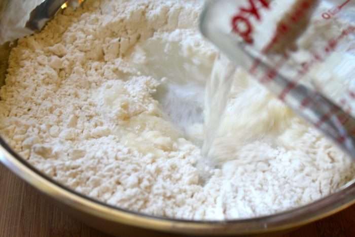 Para fermentos naturais pouco hidratados é importante separar um pouco da água indicada na receita para que ele possa ser dissolvido e incorporado à massa mais facilmente.