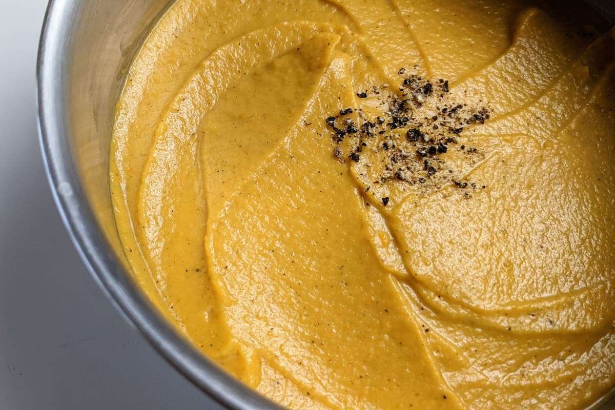 Nossa receita de purê/puré de abóbora é preparada com abóbora assada e manteiga queimada/brown butter, por isso é levemente adocicada e muito saborosa. A manteiga queimada aporta um sabor que lembra avelãs.