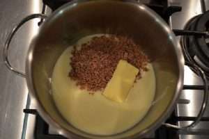 Misture os ingredientes: em uma panela média, misture o leite condensado, manteiga e chocolate.