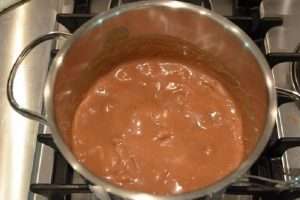 Receita preparada com leite condensado, chocolate e manteiga.