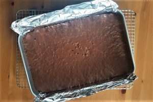 Desenforme o bolo: Deixe esfriar, passe uma faca em torno da borda interna da forma para soltar o bolo. Com muito cuidado, coloque-o de cabeça para baixo em uma tábua de corte plana. Corte em quadrados e sirva com chantilly ou sorvete.