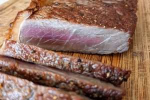 Fatiar: ao retirarmos a carne da frigideira com uma temperatura interna de 50 graus Celsius, a carne estará levemente rosada em seu interior, típico da carne de sol.