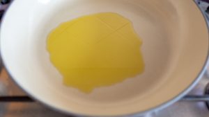Aquecer o óleo: coloque 2 colheres de sopa de azeite em uma frigideira grande SEM revestimento antiaderente. Leve ao fogo médio-alto.