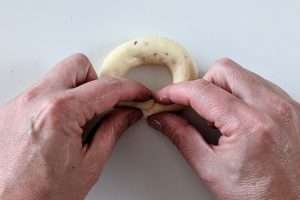 Estique cada bolinha de massa e faça argolas com elas (opcional)