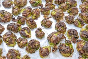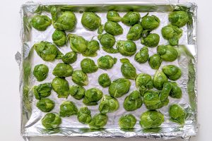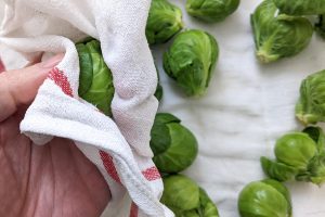 Secar: seque bem a couve-de-bruxelas. Se ela estiver molhada, ela irá cozinhar no vapor e ficará muito mole. Queremos que ela fique dourada por fora