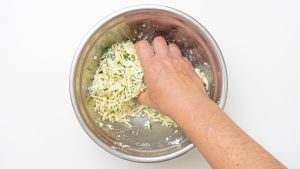 Misturar: com uma espátula de silicone ou com as mãos, misture bem os ingredientes.