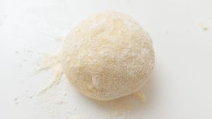 Enrolar: em uma superfície sem farinha, enrole a massa com a palma da mão até virar uma bolinha
