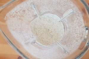 Moa os grãos: Coloque os grãos no multiprocessador em 4 etapas até que se forme uma farinha bem fina.