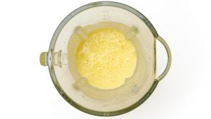 Bata os ingredientes: adicione todos os ingredientes em um copo de liquidificador, tampe e bata até que se forme uma mistura homogênea, cerca de 2 minutos.