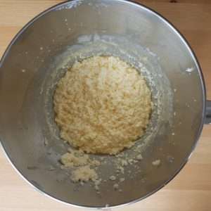 Prepare a mistura de manteiga e açúcar: Em uma tigela grande, coloque a manteiga em cubos e bata numa batedeira em velocidade baixa por 2 minutos. Em seguida, adicione o açúcar e bata em velocidade média até formar um creme fofo e aerado.