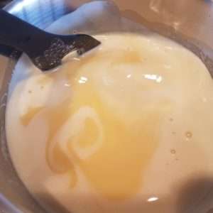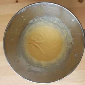 Adicione o limão: Adicione o limão na mistura cremosa. Após adicionar o limão, a mistura parecerá coalhada o que desaparecerá no processo de cozimento.