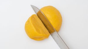 Cortar a massa: depois que a massa tiver descansado, corte-a em dois pedaços. Volte a cobrir um dos pedaços com o filme plástico enquanto trabalha o outro pedaço.