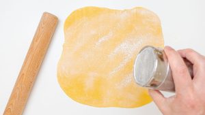Usar rolo: para abrir a massa, use um rolo polvilhado com farinha. Ou use uma máquina para abrir massa (neste caso, siga as instruções do fabricante).