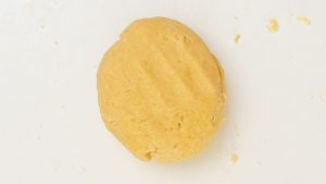 Formar uma bola de massa: a farinha deve estar totalmente incorporada à massa, mas a massa não precisa ficar homogênea. Quanto menos a massa for trabalhada, melhor.