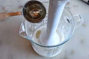 Processar 04: aos poucos a emulsão ficará firme e bem branca.