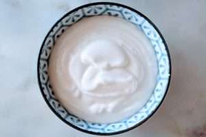 Finalizar: o toum estará pronto quando todo o óleo tiver sido utilizado. O resultado final será uma emulsão firme e branca, com textura similar à clara em neve em ponto firme.