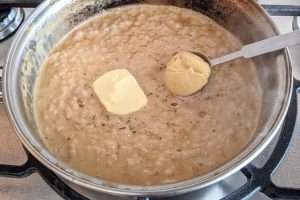 Manteiga: coloque metade da manteiga na frigideira e espere até que derreta