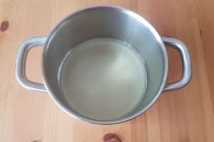 Prepare a gelatina: Em uma tigela média, coloque as folhas de gelatina na água fria e as mantenha submersas por 5 – 7 minutos. O tempo pode variar dependendo do fabricante da gelatina, sempre verifique as instruções na embalagem.
