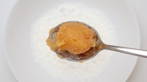 Separar porção: pegue uma pequena porção de frango com uma colher. Cada porção deve ter cerca de 20 gramas (menor que uma bola de ping pong)