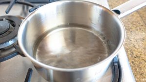 Prepare o banho-maria: aqueça um pouco de água em uma panela pequena.