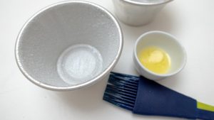 Prepare os ingredientes (mise en place): separe todos os ingredientes e meça-os, deixando-os devidamente prontos para o início da receita. Esta etapa é importante para o sucesso da sua receita, pois evita surpresas no meio do processo. Prepare a forma: unte a forminha de alumínio (descartável ou não) com manteiga derretida e açúcar, ou com manteiga derretida e farinha de trigo. Deixe-a no refrigerador enquanto prepara o resto da receita.É importante untá-la bem para que o petit gâteau não grude e se parta ao desenformá-lo Pique o chocolate: pique o chocolate em pedaços pequenos.